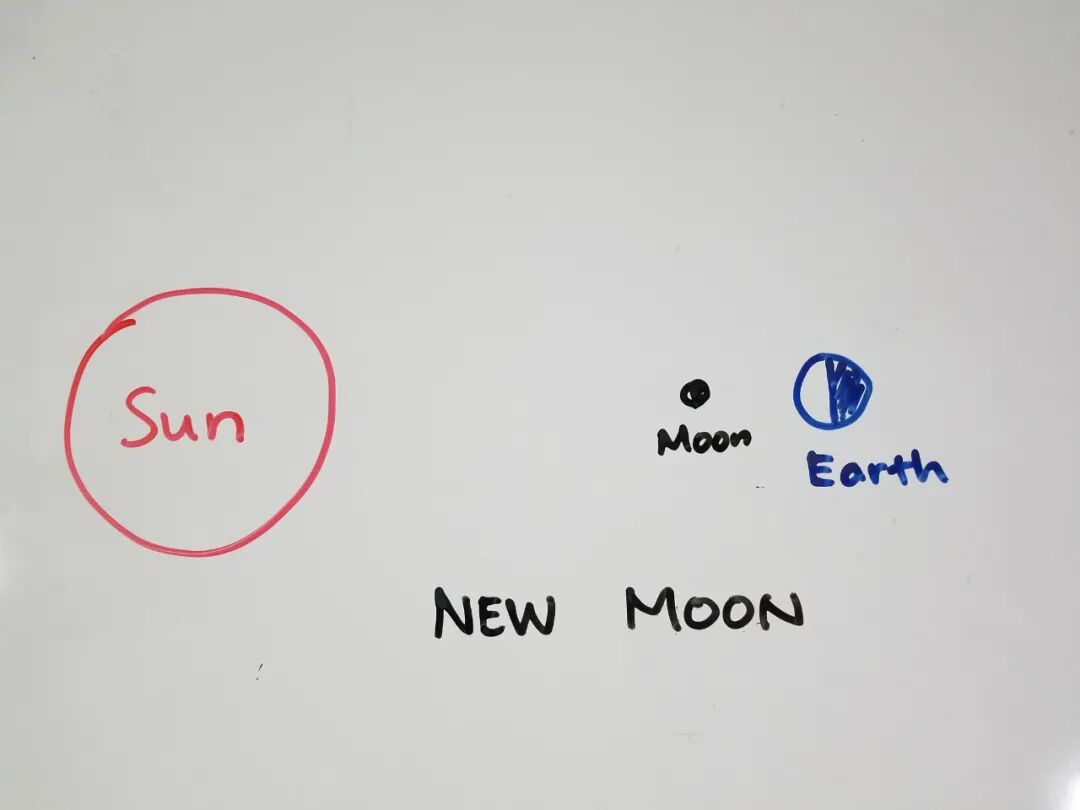 New Moon happens when the Sun, Moon and Earth are more or less aligned in 1 straight line. People on the night side of Earth will be unable to see the moon (Dark Moon) or just see a slight crescent of the moon (New Moon).