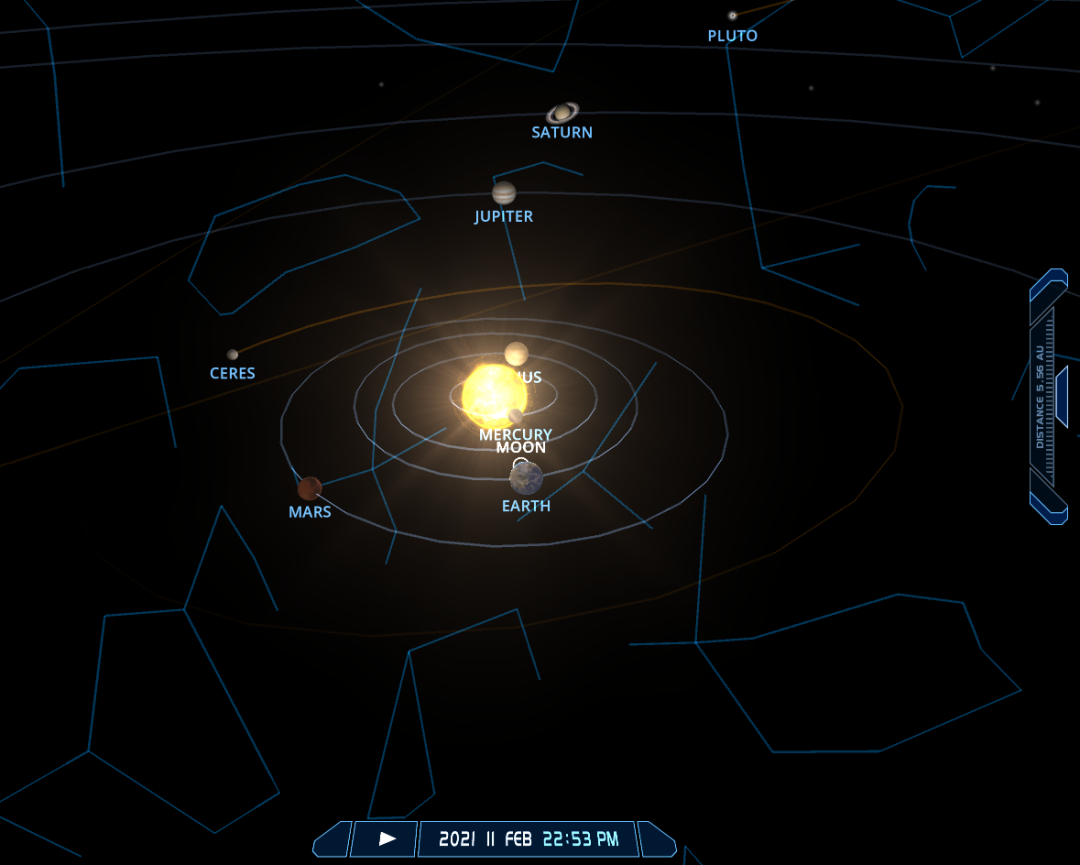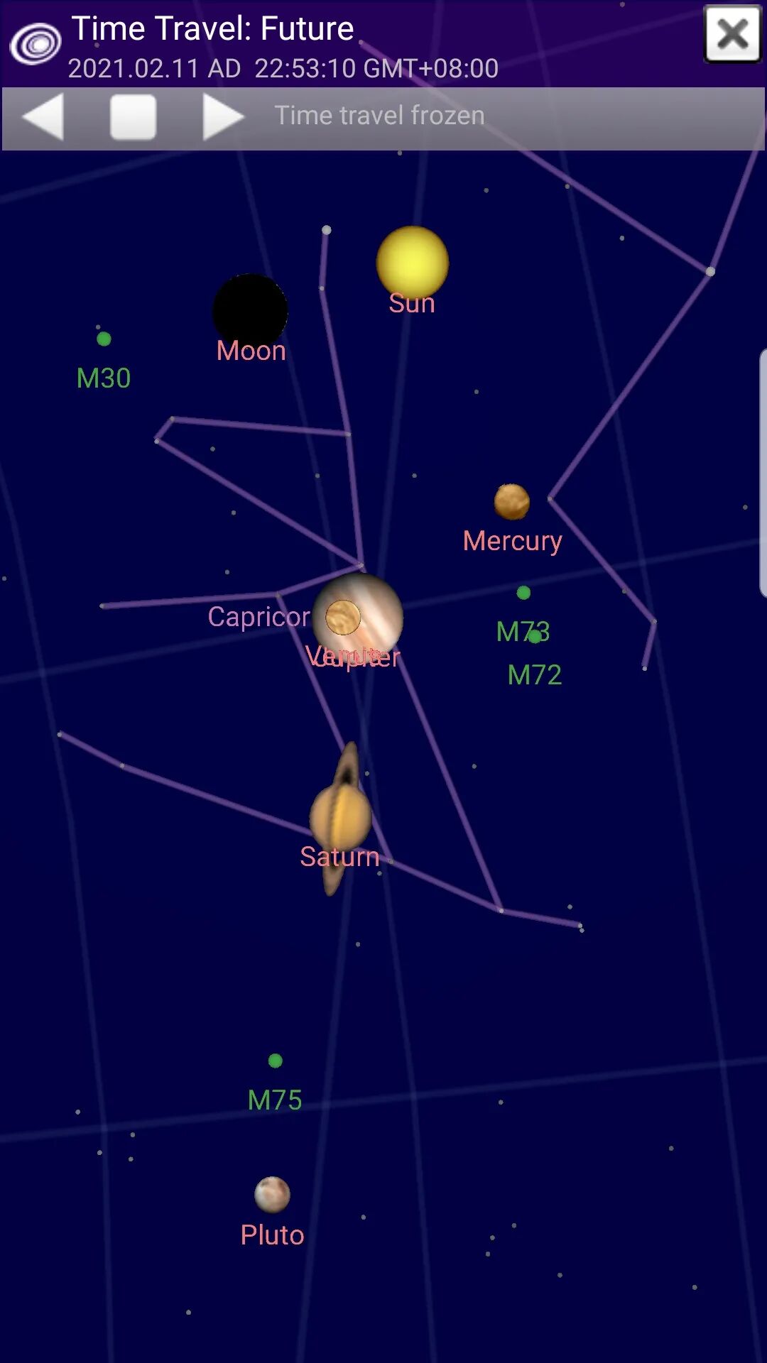 From 1am Wed 10 Feb 2021  to 4am Fri 12 Feb 2021 (Malaysia/China time UTC +8), these 7 celestial bodies (Pluto, Saturn, Venus, Jupiter, Mercury, Moon, Sun) will be in the constellation of Capricorn, within 30 degrees (or 1/12th) of the ecliptic sky. A stellium like this won’t be seen again until 2060, so this is a once-in-a-lifetime rare celestial event for many of us.